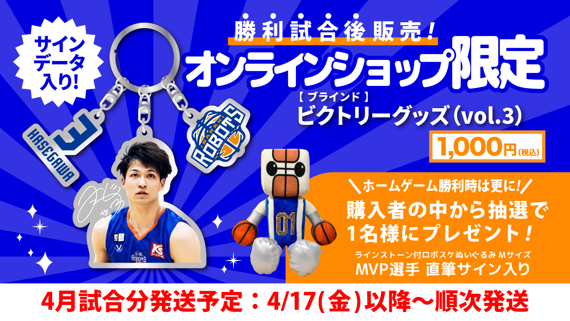 No.5119999022018 【ブラインド】25-26ビクトリーグッズ(vol.3) ¥1,000 (税込) カラー 1カラー サイズ - [在庫あり] 1 2 3 4 5 6 7 8 9 10 カートに入れる 入荷リクエスト 再入荷リクエスト > 再入荷リクエストとは ツイート 商品説明 ※重要なお知らせ※ ・【ブラインド】25-26ビクトリーグッズ(vol.3)の4月試合分発送日は、 4/17(金)以降〜順次発送予定となります。予めご了承ください。 ・複数商品購入時は、納期が一番遅いものに合わせての発送となります。 【勝利試合後~翌日昼12:00まで限定販売!】 25-26ビクトリーグッズ(vol.3) 茨城ロボッツでは昨シーズンに引き続き、ホームゲーム・アウェーゲームを対象に、勝利試合後のみ購入可能な「【ブラインド】25-26ビクトリーグッズ」を発売いたします。 また、会場内グッズショップの混雑緩和の観点から、今シーズンは【オンラインショップ限定】で販売いたします。 ロボッツの勝利をビクトリーグッズと共にお祝いしましょう! デジタルサイン入りの第三弾デザインが登場! ※全14選手展開 ★重要なお知らせ★ 勝利時限定ビクトリーグッズの販売方法を以下の通りといたします。 【ホーム勝利時】試合終了後~翌日昼12:00まで 【アウェー勝利時】試合当日22:00~翌日昼12:00まで ※在庫には限りがございますので、予めご了承ください。 【抽選・ホーム勝利時限定】「MVP選手直筆サイン入り!ラインストーン付きロボスケMサイズ(ビクトリーver.)」をプレゼント! ホームゲーム勝利日~翌日昼12:00までにビクトリーグッズをご購入いただいた方の中から抽選で 「MVP選手直筆サイン入り!ラインストーン付きロボスケMサイズ(ビクトリーver.)」をプレゼント! 【エントリー方法】 茨城ロボッツのホームゲーム勝利日~翌日昼12:00までに、茨城ロボッツオフィシャルオンラインショップにて 「【ブラインド】25-26ビクトリーグッズ(vol.3)」をご購入いただいた方が自動エントリー 詳細はコチラ! >>別ウィンドウで開く 納期 ※重要なお知らせ※ 【ブラインド】25-26ビクトリーグッズ(vol.3)の4月試合分発送日は、 4/17(金)以降〜順次発送予定となります。予めご了承ください。 注意点 ※複数商品購入時は、納期が一番遅いものに合わせての発送となりますので予めご了承ください