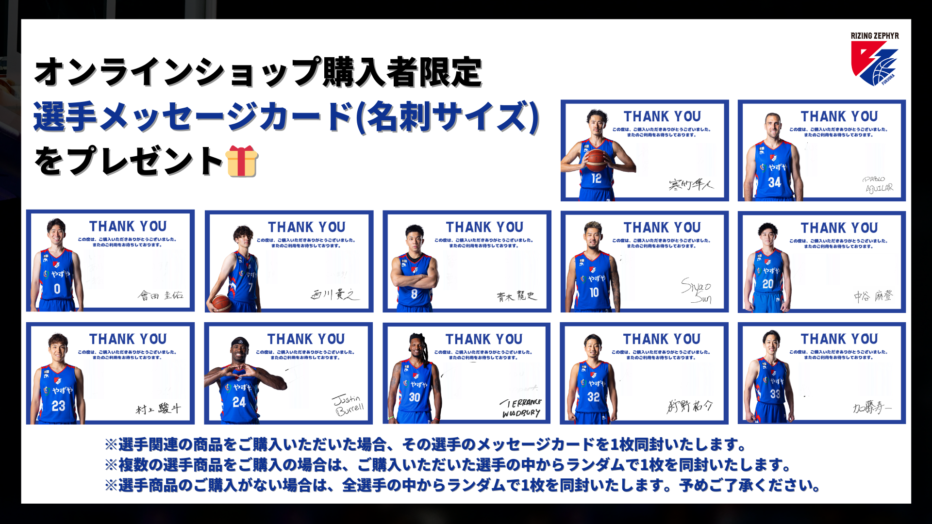 PICK UP選手イラストタオル¥2,700 (税込)アラキユウジさんコラボの選手イラストタオルです!選手のニックネームと縦型デザインのタオルとなっています。商品ページ -