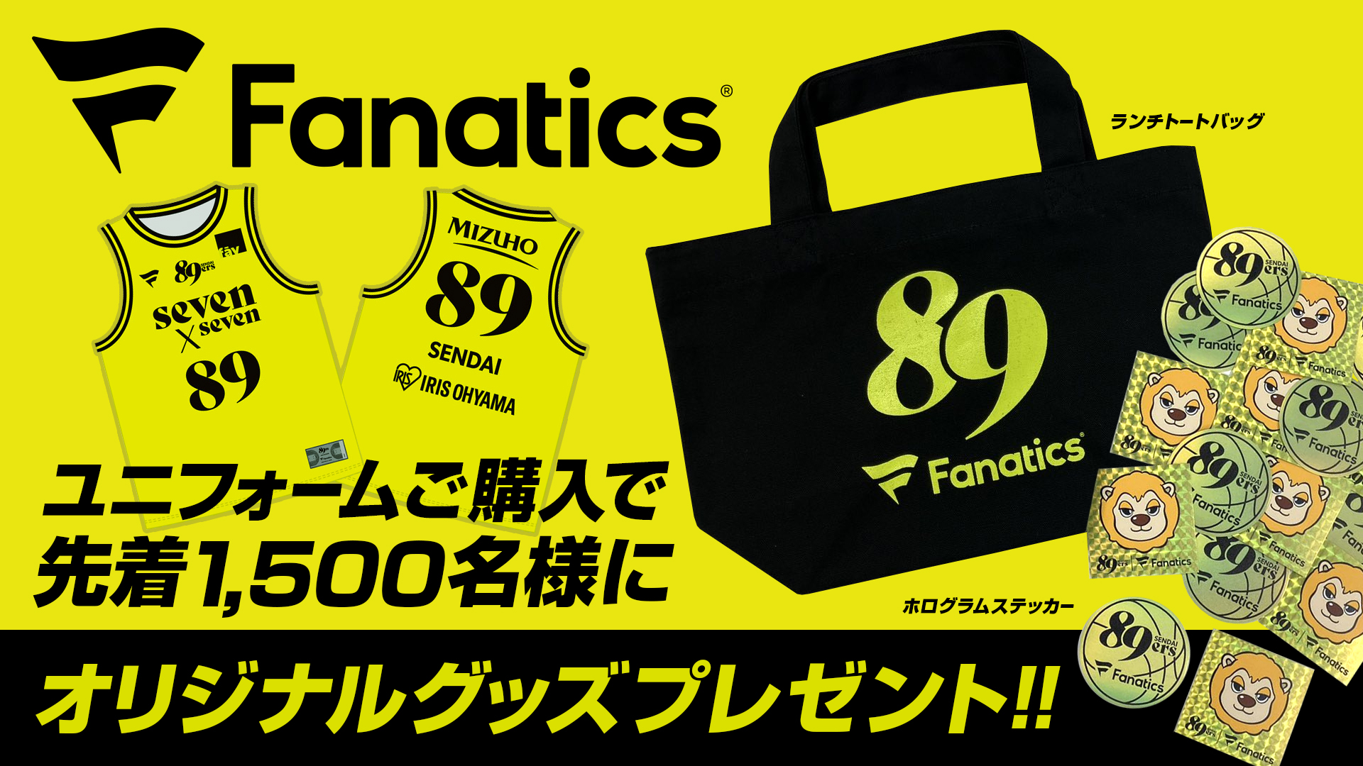 10/4(土)からアリーナと仙台89ERS公式オンラインショップで、オーセンティックユニフォーム、レプリカユニフォームをご購入の方先着500名様にオリジナルミニランチトートをプレゼント!