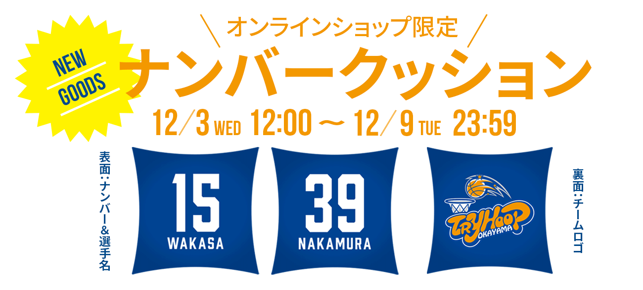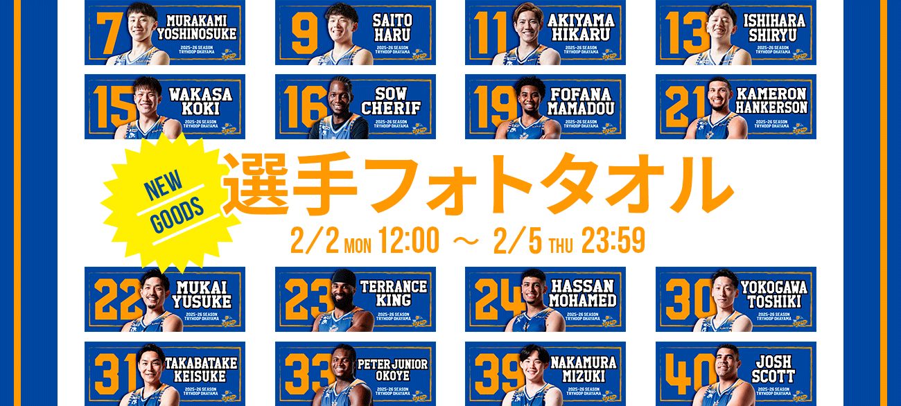 PICK UPネームタオル 2025-26¥2,300 (税込)選手の番号と名前が大きく入ったフェイスタオル。会場で掲げて応援しましょう!商品ページ